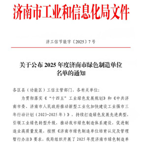 华特科技荣获“济南市绿色工厂”认定近日,济南市工业和信息化局发布了《关于公布2025年度济南市绿色制造单位名单的通知》,公司凭借其在智能化、数字化赋能绿色生产方面的突出成效,被成功认定为“济南市绿色工厂”。 -